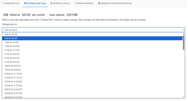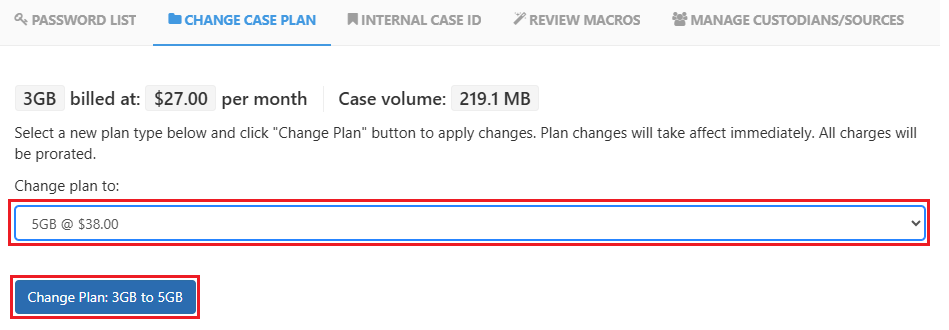 Changing plans is quick and easy. There are two ways you can change your case plan. One way is from the Settings view of your case and the other is directly from the Overview screen.